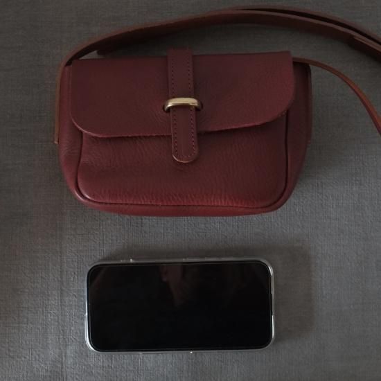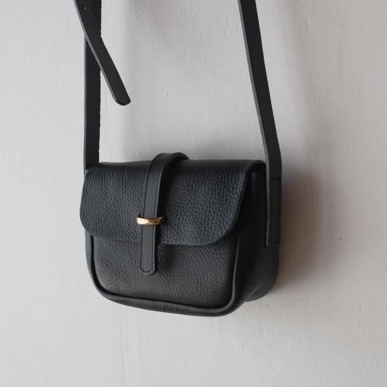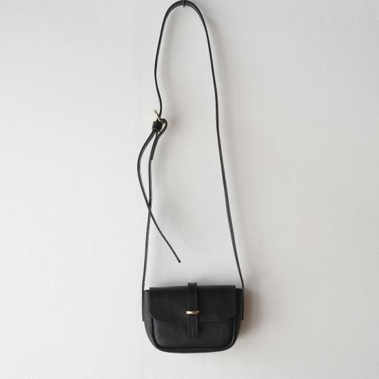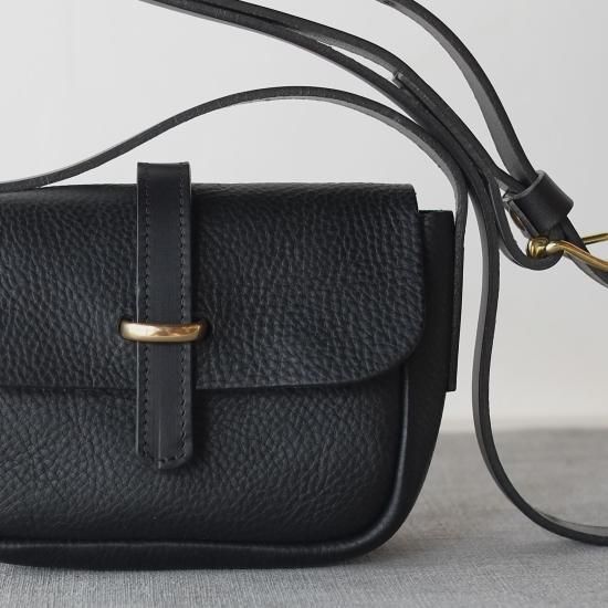英国のブランドMIMI BERRYより小さめのショルダーです。革は揉み革なので、柔らかく傷もつきにくいです。スマホとミニ財布を入れるのにちょうどよい大きさです。長財布は入りません。カラーはブラックです。